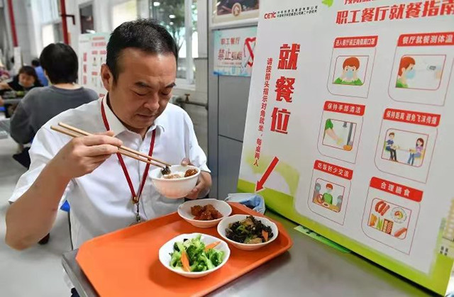 全國各機關(guān)單位、餐飲企業(yè)通過加強宣傳、推出半份菜和小份菜等措施,積極營造厲行節(jié)約、反對浪費的餐飲風(fēng)尚。圖為2020年8月19日,中國電子科技集團公司第二十研究所一名員工選擇半份菜用餐。新華社記者 張博文 攝