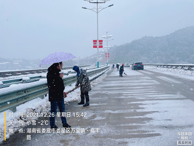 婁雙公路通行正常,未出交通事故,市政維護(hù)處正在鏟雪,準(zhǔn)備撒鹽,確保橋面不結(jié)冰