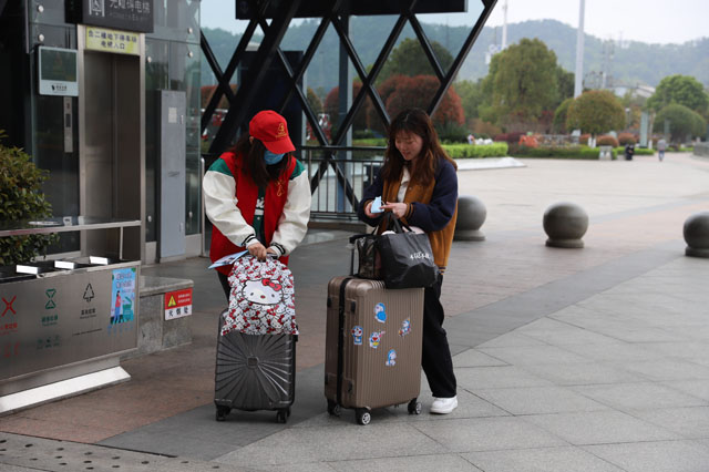 志愿者身穿紅馬甲,通過規(guī)范的手勢、禮貌的語言,主動(dòng)為旅客搬運(yùn)行李,宣傳疫情防控知識(shí),幫助旅客購票退票,引導(dǎo)旅客文明出行,用實(shí)際行動(dòng)詮釋志愿服務(wù)精神,成為高鐵南站一道靚麗的風(fēng)景線。