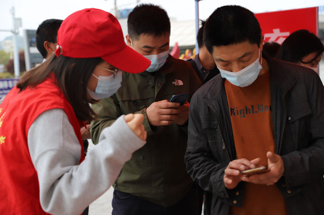 (幫助旅客進(jìn)行掃碼登記)