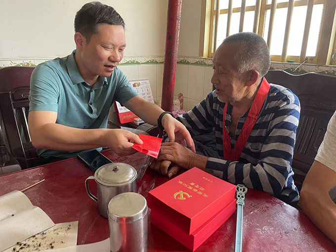 (葛旭華慰問“在黨五十年”的老黨員童項書)