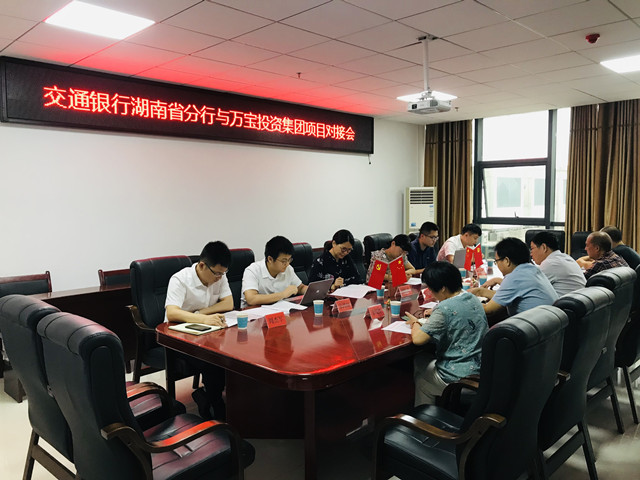 8月26日上午,交通銀行湖南省分行投行部副總經(jīng)理賀曉玢一行,在交通銀行婁底分行副行長邢英等陪同下,來萬寶投資集團(tuán)開展項(xiàng)目對接。萬寶投資集團(tuán)董事長梁養(yǎng)賢、總經(jīng)理徐業(yè)波及財務(wù)融資部負(fù)責(zé)人參與接洽并組織召開座談會,雙方就我司近期即將發(fā)行的短期融資券項(xiàng)目進(jìn)行了深入的溝通交流。